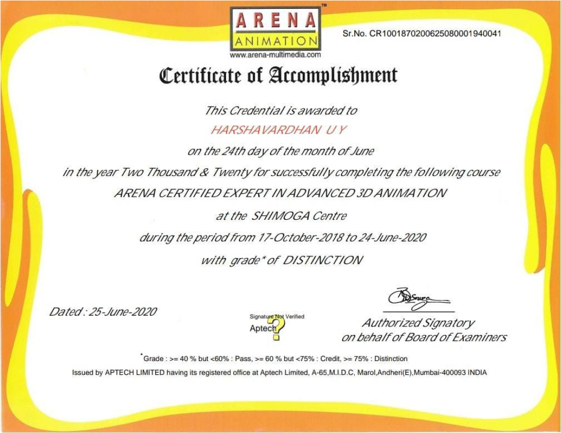 At Arena Animation, I am immersing myself in the dynamic world of animation and multimedia. This program equips me with essential skills in 2D and 3D animation, visual effects, and graphic design, allowing me to transform my creative ideas into captivating visuals.